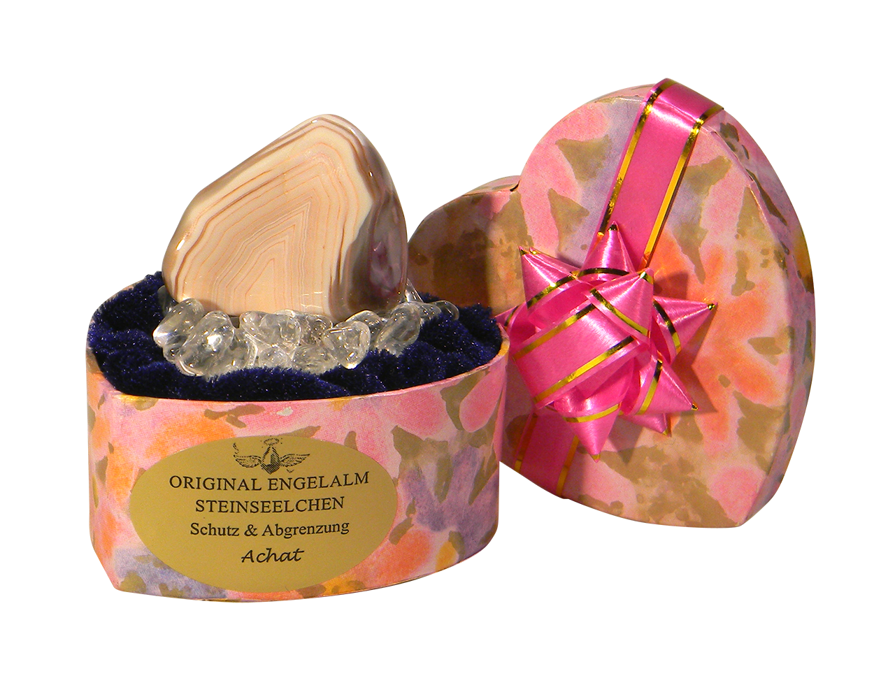 Energetisierter Edelstein in einer romantischen Geschenkbox (Design variiert). Präsentiert wird das Steinseelchen liebevoll gebettet auf reinsten Kristallen (Bergkristall). Eine Reinigung ist nicht notwendig. Das Steinseelchen kann einfach im mitgelieferten Kristallbett aufbewahrt werden.