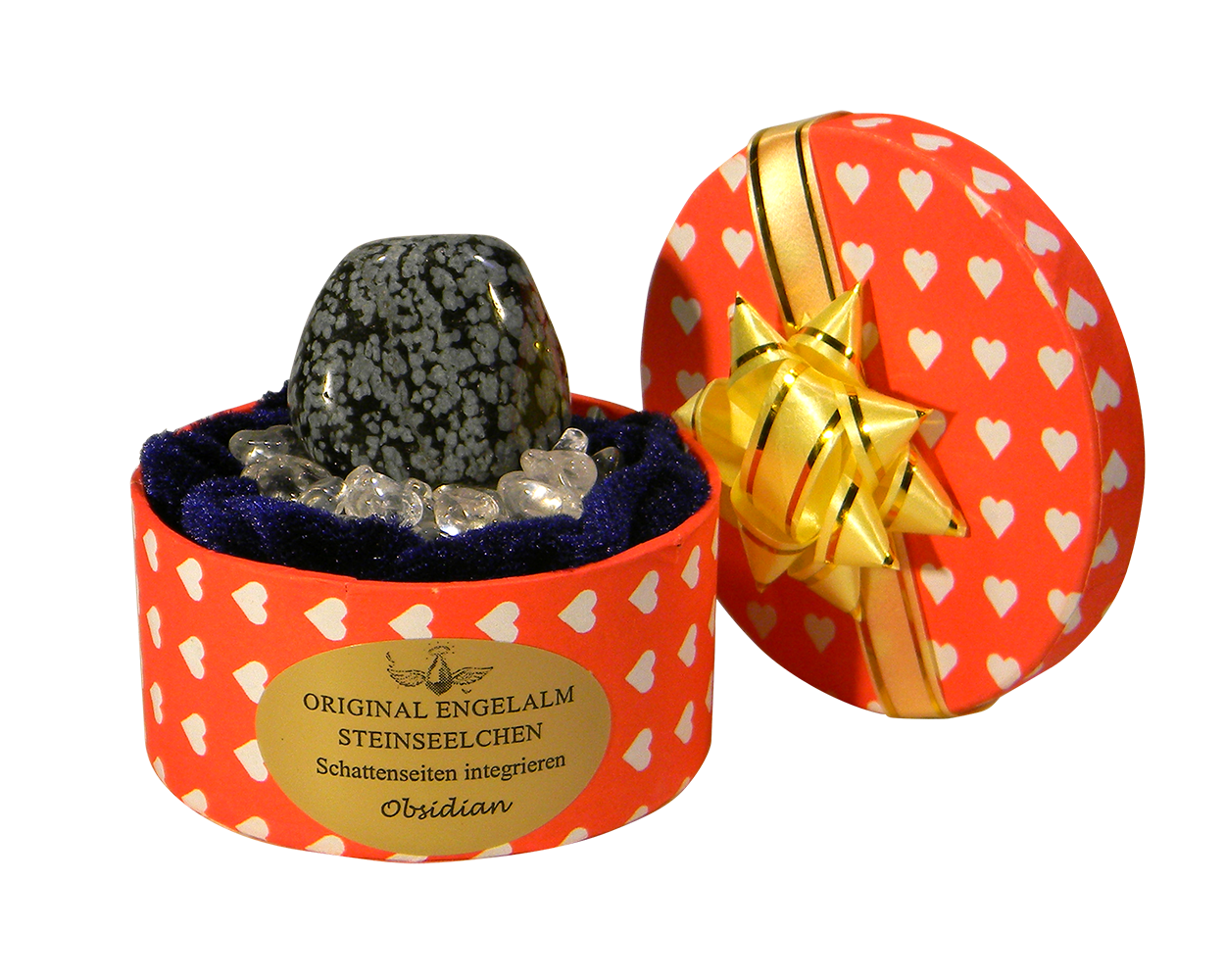 Energetisierter Edelstein in einer romantischen Geschenkbox (Design variiert). Präsentiert wird das Steinseelchen liebevoll gebettet auf reinsten Kristallen (Bergkristall). Eine Reinigung ist nicht notwendig. Das Steinseelchen kann einfach im mitgelieferten Kristallbett aufbewahrt werden.