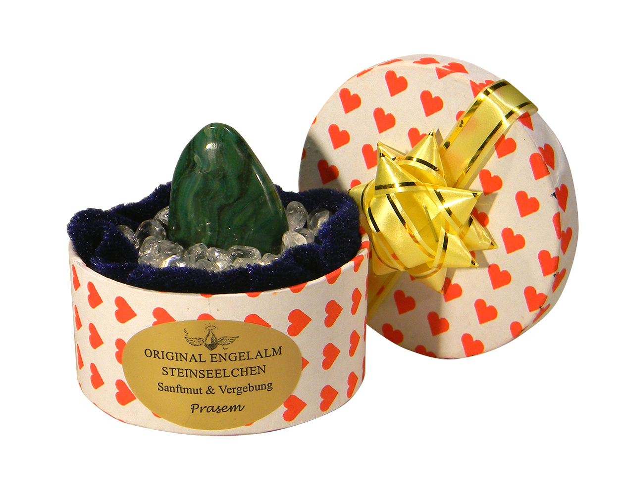 Energetisierter Edelstein in einer romantischen Geschenkbox (Design variiert). Präsentiert wird das Steinseelchen liebevoll gebettet auf reinsten Kristallen (Bergkristall). Eine Reinigung ist nicht notwendig. Das Steinseelchen kann einfach im mitgelieferten Kristallbett aufbewahrt werden.