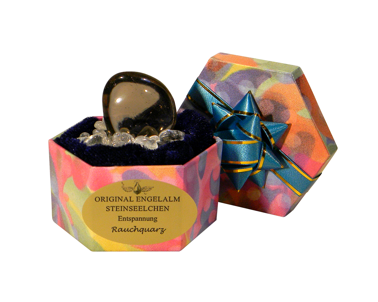 Energetisierter Edelstein in einer romantischen Geschenkbox (Design variiert). Präsentiert wird das Steinseelchen liebevoll gebettet auf reinsten Kristallen (Bergkristall). Eine Reinigung ist nicht notwendig. Das Steinseelchen kann einfach im mitgelieferten Kristallbett aufbewahrt werden.