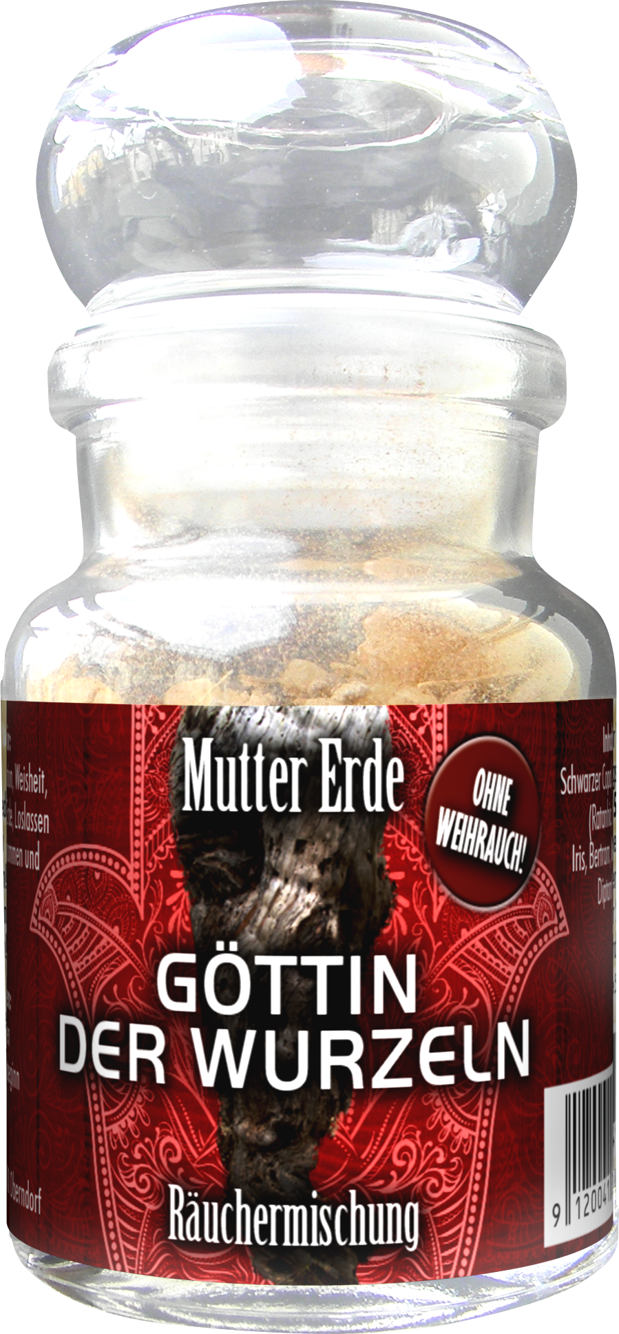Inhalt: Myrrhenharze, Schwarzer Copal, Amber, Wurzeln (Ratanhia, Narde, Angelika, Iris, Bertram, Meisterinnenwurz, Diptam) Patchouliblätter, Odermennig u.a.
