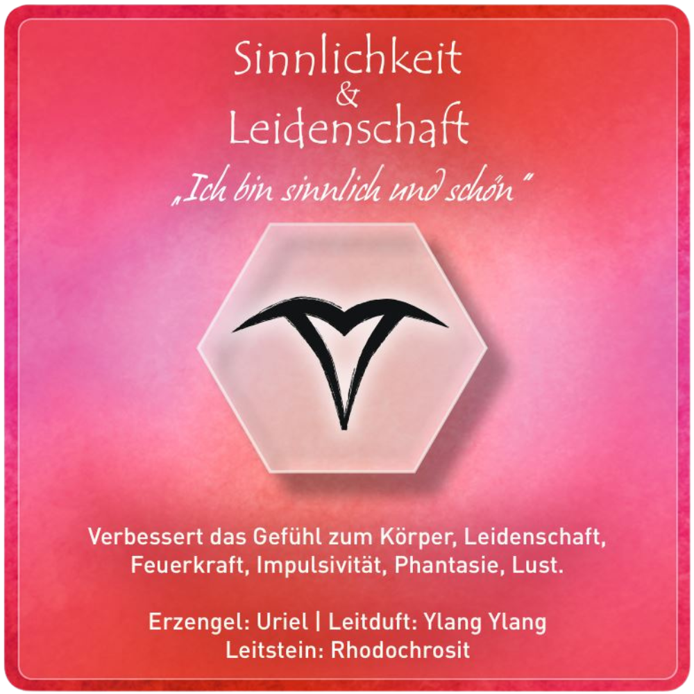 Verbessert das Gefühl zum Körper, Leidenschaft, Feuerkraft, Impulsivität, Phantasie, Lust. Erzengel: Uriel Leitduft: Ylang Ylang Leitstein: Rhodochrosit Füllinhalt: 50ml