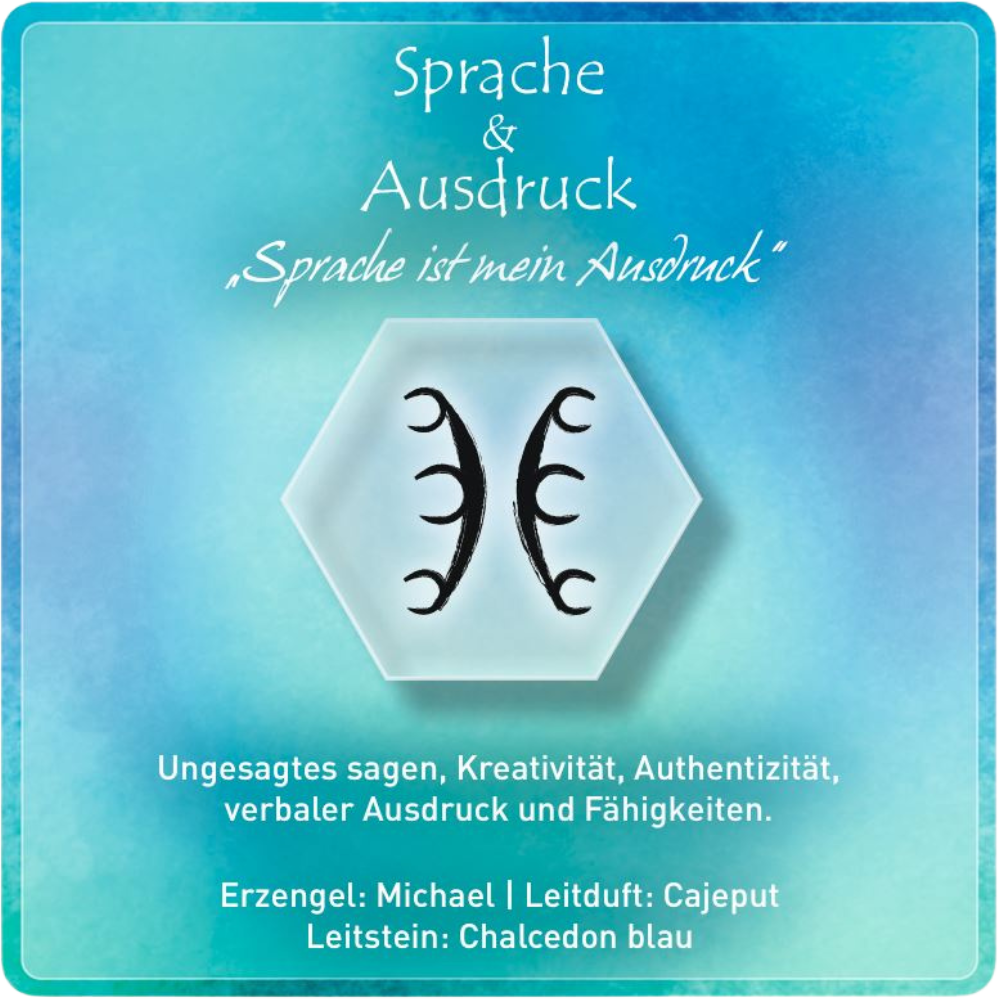 Ungesagtes sagen, Kreativität, Authentizität, verbaler Ausdruck und Fähigkeiten. Erzengel: Michael Leitduft: Cajeput Leitstein: Chalcedon blau Füllinhalt: 50ml