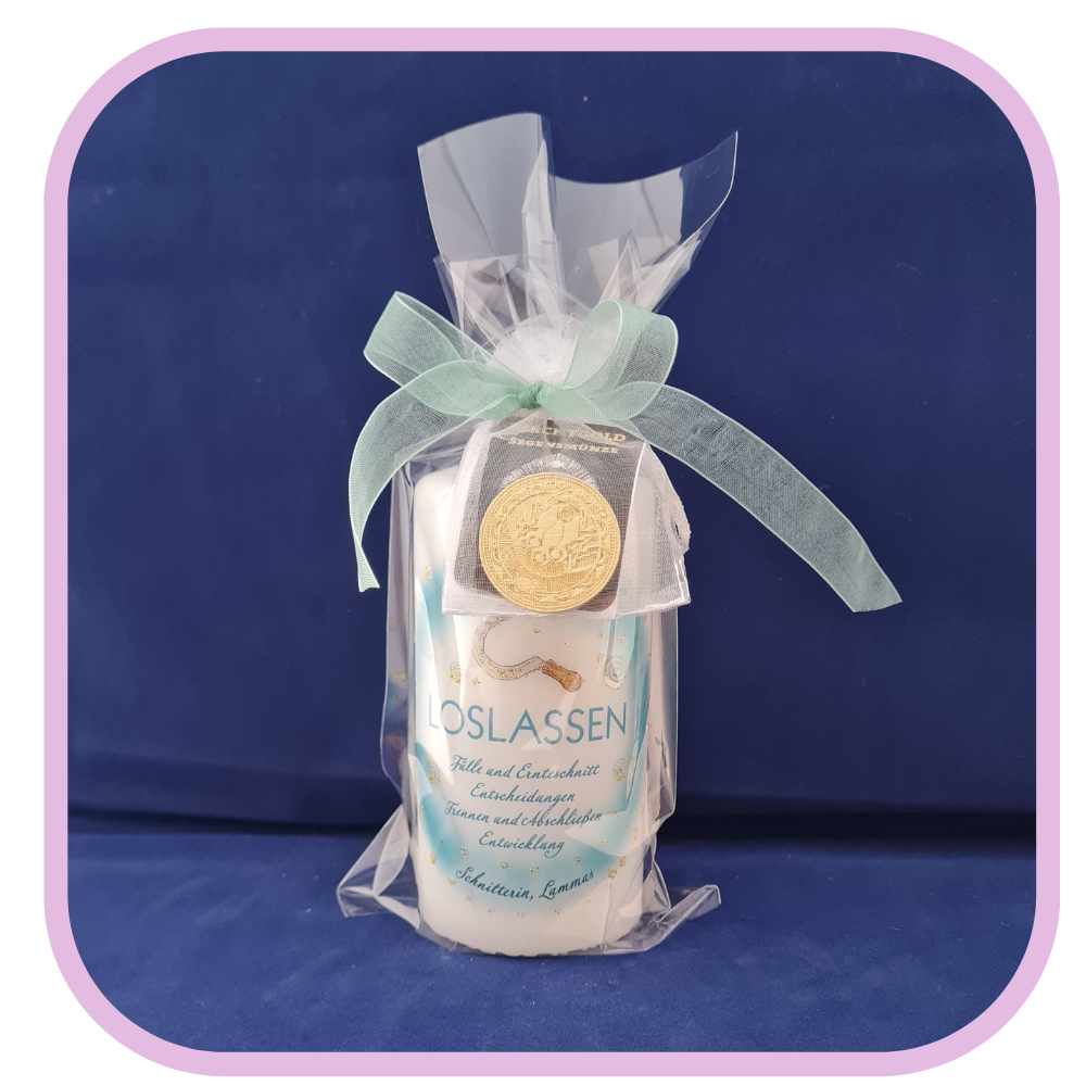 Du erhältst eine Themenkerze JAHRESKREIS in der Größe 120/60 aus Paraffin mit einer durchschnittlichen Brenndauer von 45h. Auf der Kerze befindet sich in einem Chiffon-Säckchen die