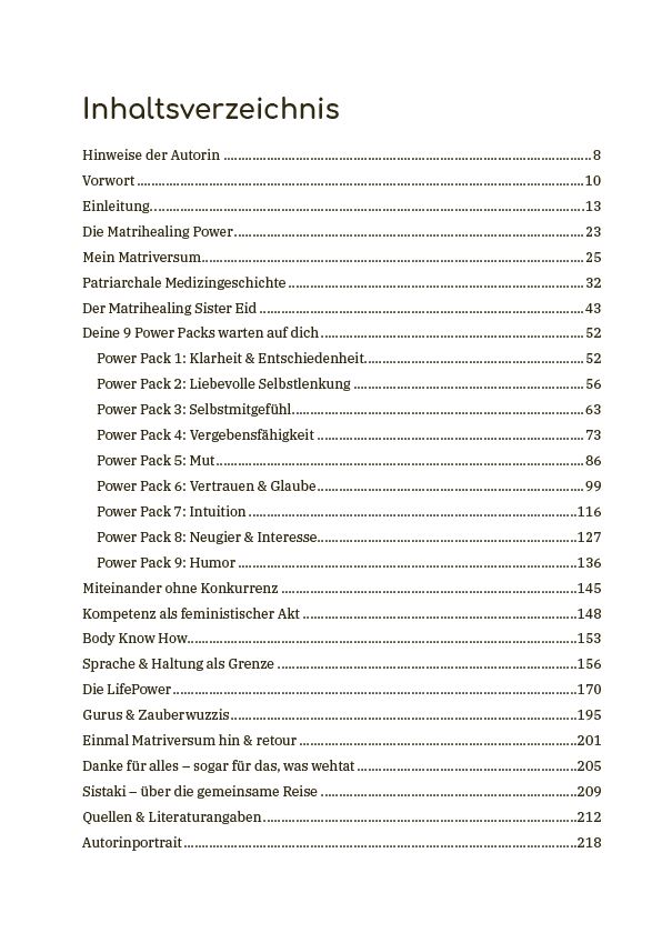 Dieser Ratgeber ist kein spirituelles Wohlfühlbuch, sondern ein radikales Handbuch mit Humor, Hirn, Herz und Haltung. Im Matriversum warten PowerPacks – prall gefüllt mit Heilungskompetenz und Lebensenergie darauf, entdeckt zu werden.